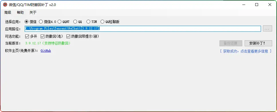 ![图片[1]-微信QQ防撤回补丁v2.0:支持微信4.0测试版 - 搜源站-搜源站](https://www.souyuanzhan.com/wp-content/uploads/2025/02/f987cd2fcb20250225211516.webp)