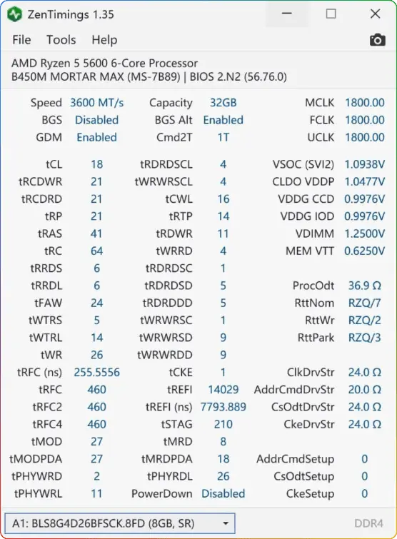 - 时序精准显示:实时展示CL值、tRCD、频率等关键参数(如DDR4-3600 CL18)