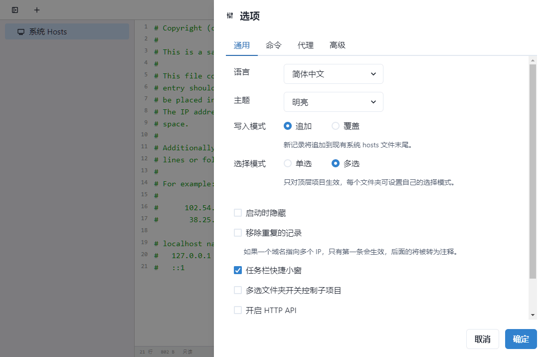 - 多配置切换:支持创建多个 hosts 配置方案,一键切换不同场景(如开发环境、测试环境、日常使用),无需手动修改替换文件。