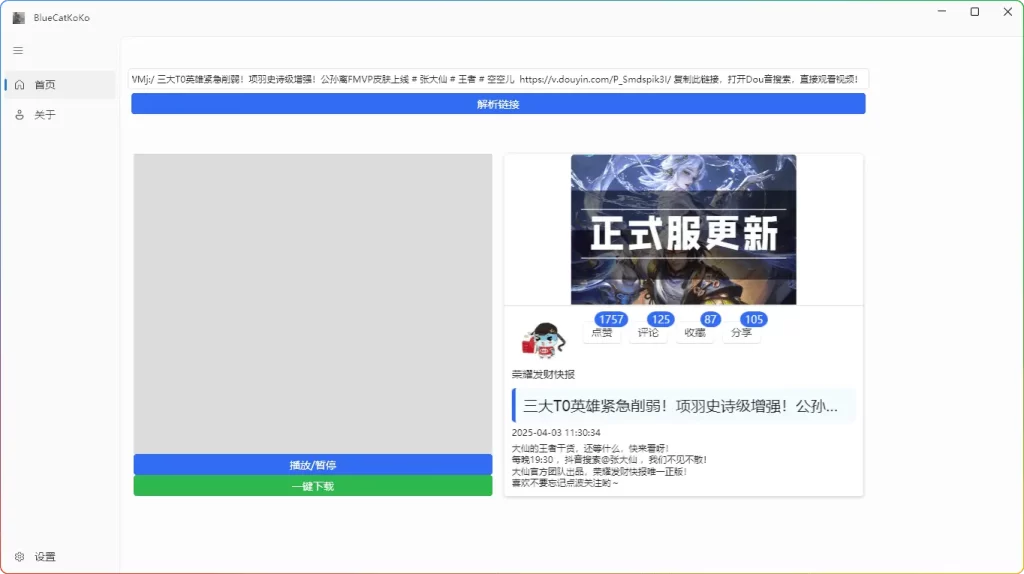 ![图片[1]-蓝猫 KoKo v1.7.1:抖音快手短视频下载工具 - 搜源站-搜源站](https://www.souyuanzhan.com/wp-content/uploads/2025/04/775782991920250405190231-1024x574.webp)