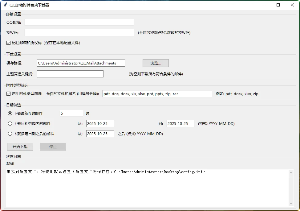 一、工具介绍QQ邮箱附件自动下载器由吾爱破解论坛用户于2025年10月24日发布,旨在简化用户管理邮件附件的流程。工具通过自动化方式减少手动操作,特别适合经常处理附件的用户群体,免费提供且无需复杂配置即可快速上手。
