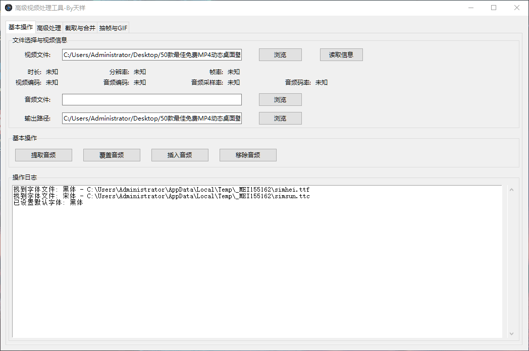 工具基于FFmpeg命令行工具封装,通过图形界面调用底层指令,确保处理效率。内置黑体、宋体字体库,避免系统环境差异导致显示问题。