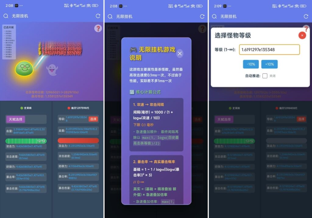 - 自动化挂机:启动后自动持续打怪,每个怪物独立计算,确保进程真实可靠。